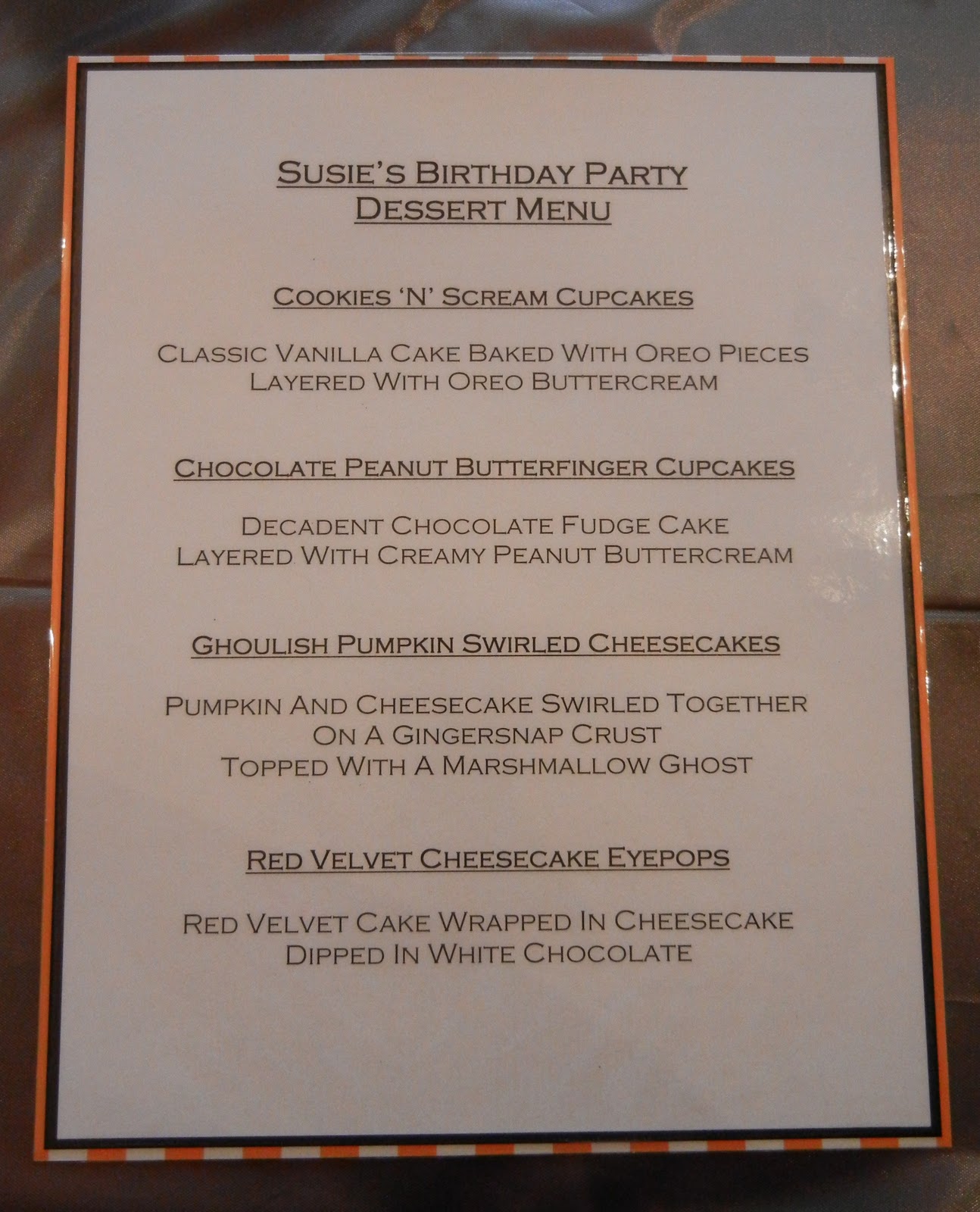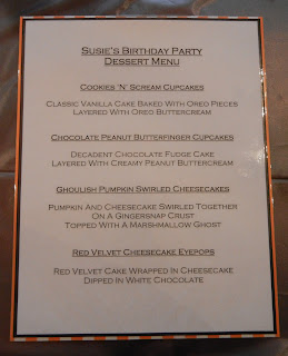 All the items on the menu were (appropriately) given Halloween names. Here's a picture of the menu!